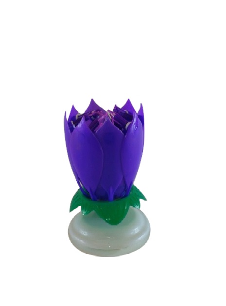 This listing is for the Purple Colored Lotus Flower Birthday EXCITING CANDLE ®. It rotates slowly in a circular motion, has 14 mini candles attached to the petals, and plays the Happy Birthday melody.