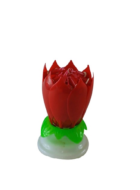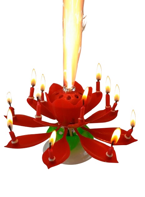This listing is for the Red Colored Lotus Flower Birthday EXCITING CANDLE ®. It rotates slowly in a circular motion, has 14 mini candles attached to the petals, and plays the Happy Birthday melody.