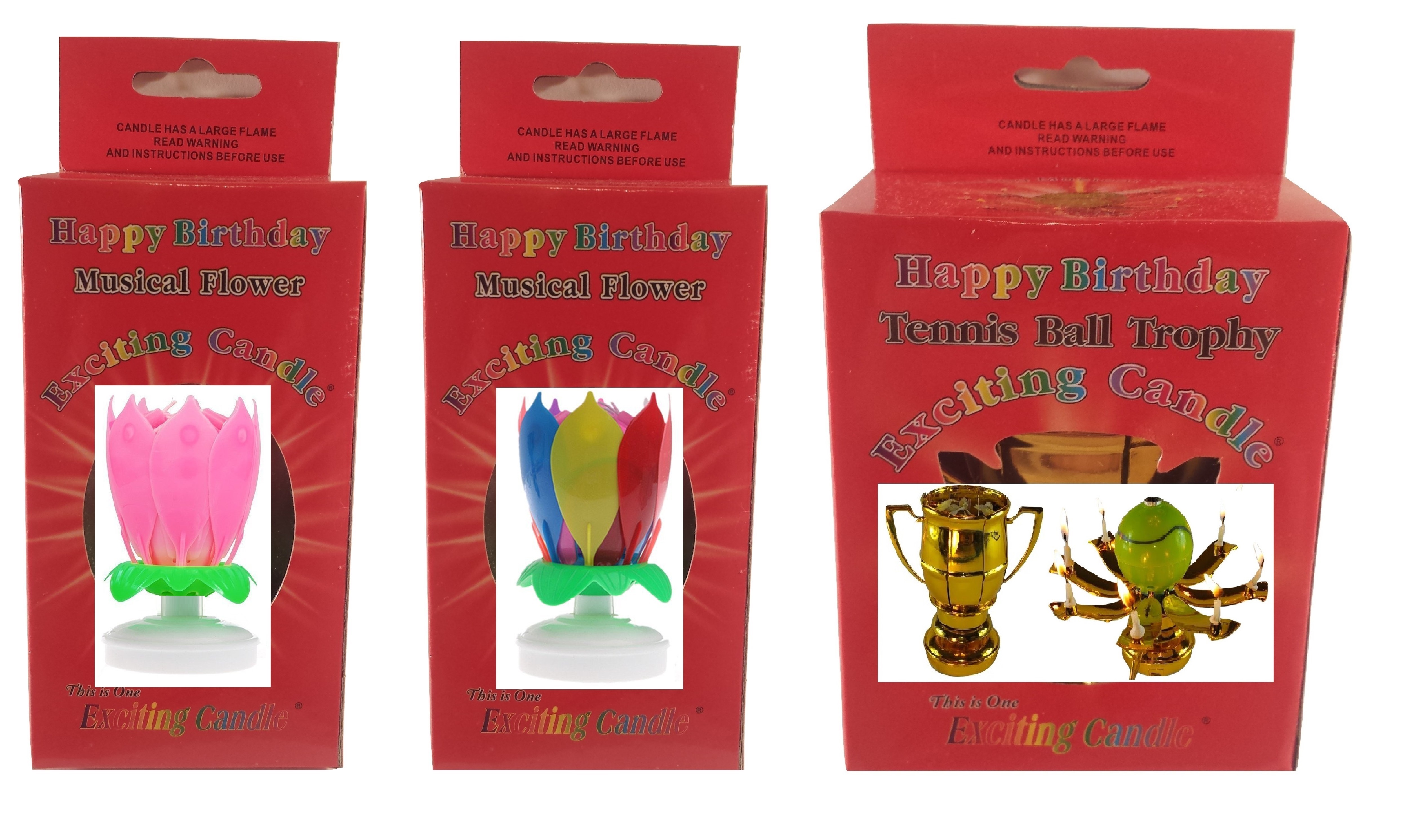 3 Pack, Rainbow, Pink, and Tennis Exciting Candles
