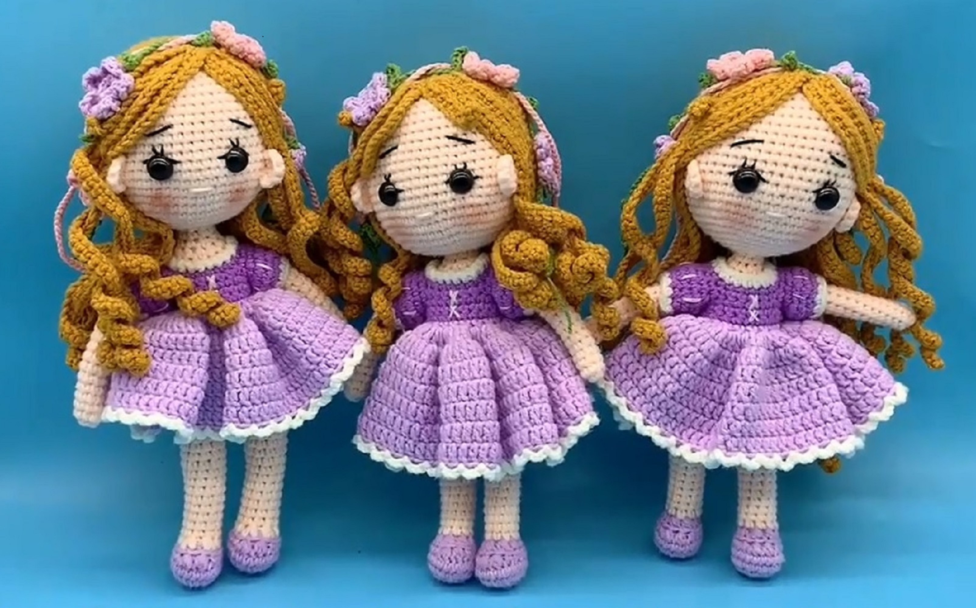 Hand Crocheted Purple Dress Doll, Sleeping Pal, Snuggle Toy