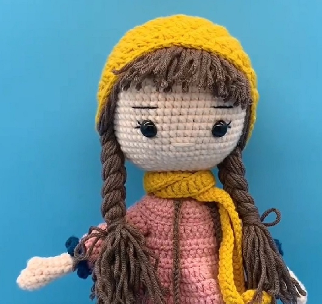 Hand Crocheted Yellow Hat Doll, Sleeping Pal, Snuggle Toy