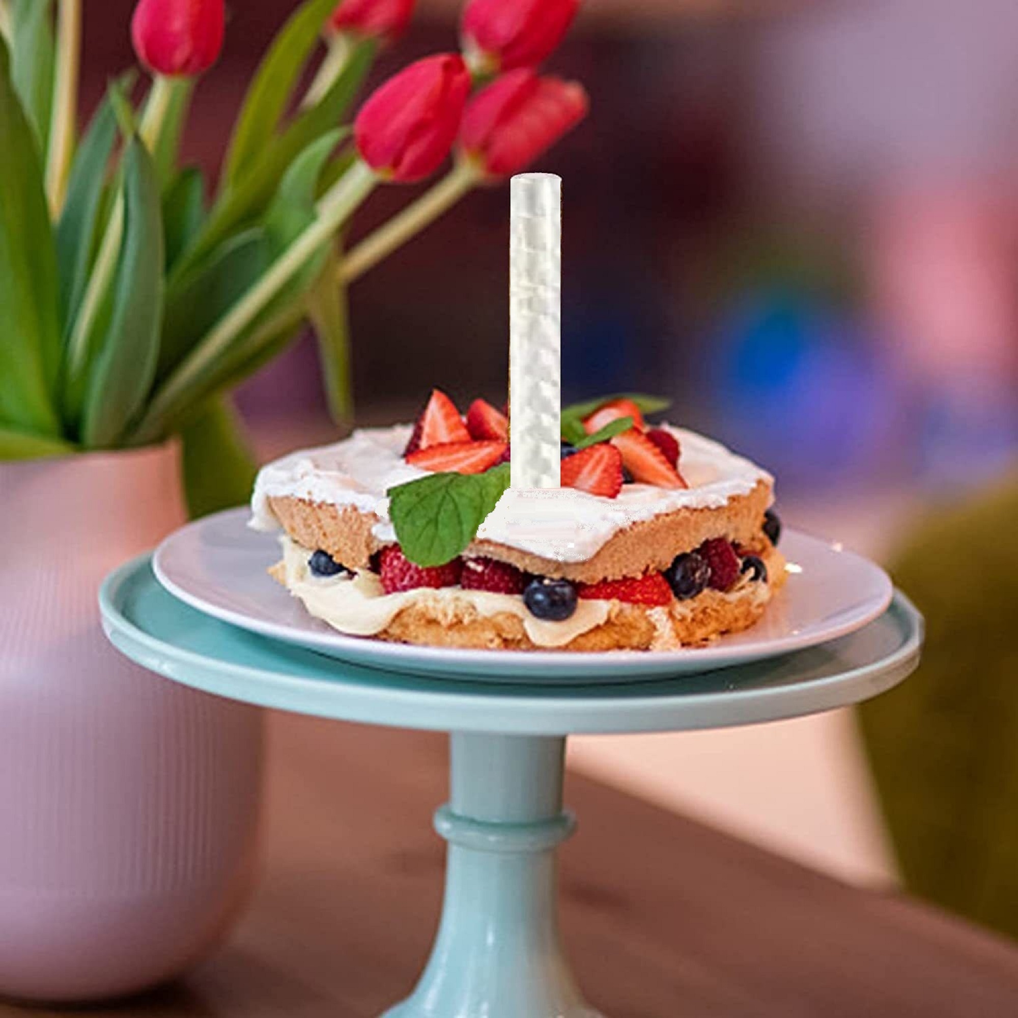 4: The bottom bracket (red part) is equipped to securely insert into birthday cakes, dessert breads, large cupcakes, ice cream cakes and various decorated cakes